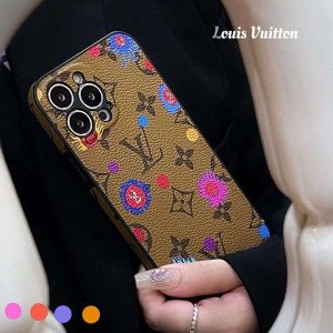 ルイヴィトン iPhone ケース モノグラム レザー 落書き かわいい 一体型カメラレンズ保護