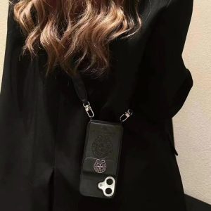 クロムハーツ iPhone ケース スマホショルダー ストラップ付き 型押し革 カード収納 MagSafe対応
