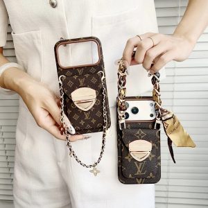 ルイヴィトン iPhone ケース モノグラム デザイン カード収納 ショートチェーン付き 落下防止