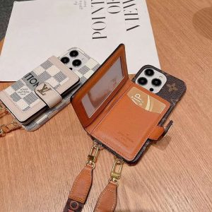 ルイヴィトン iPhone ケース ショルダータイプ カードポケット付き 手帳型