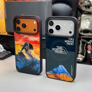 ノースフェイス iPhone ケース 背面ガラス 分離式 MagSafe対応 ロゴプリント