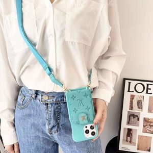 ルイヴィトン iPhone ケース 肩掛け 縦型 型押し 背面カード入れ 衝撃吸収