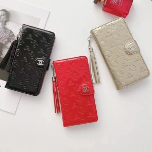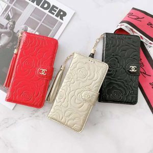 シャネル iPhone ケース 手帳型 カメリア 財布型 カード収納 花柄 タッセル付き