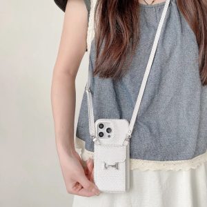 エルメス iPhone ケース ショルダータイプ ストラップ付き カーフレザー ライチ風 カード収納