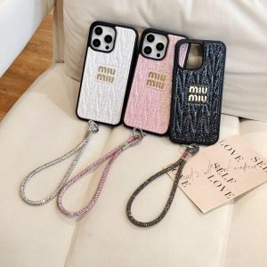 ミュウミュウ iPhone ケース グリッター レザー リング付き 可愛い