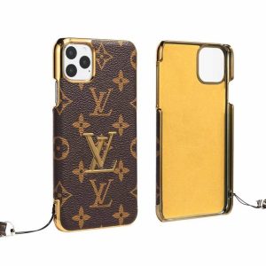 ルイ?ヴィトン iPhone ケース モノグラム レザー オレンジ 紐付き ストラップ付き 落下保護