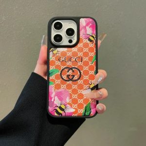 グッチ iPhone ケース TPU+レザー 蜂と花柄 かわいい 耐衝撃