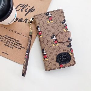 グッチ iPhone ケース 手帳型 スライド式 ディズニーデザイン カード収納 ストラップ付き