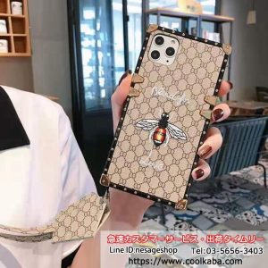 グッチ iPhone ケース トランク型 刺繍ミツバチ ネックストラップ付き 紛失防止
