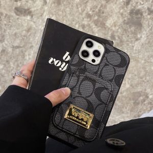 コーチ iPhone ケース 背面収納 金属ロゴ 高品質 キルティングレザー おしゃれ