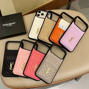 サンローラン iPhone ケース レザー カード入れ付き 背面ショルダー 斜め掛けスタイル