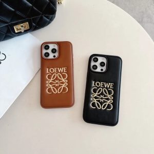 ロエベ iPhone ケース エンボスレザー 電気メッキ加工 大人向け カード入れ 手触り抜群