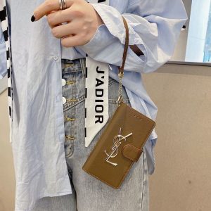 イヴサンローラン iPhone ケース 手帳型 スライド式 財布型 カード収納 スタンド機能 ストラップ付き MagSafe対応個