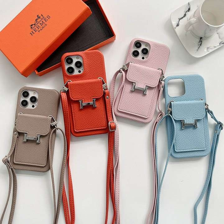 エルメス iPhone ケース ショルダー ストラップ付き 背面カード収納 手ぶら女子向け 斜めがけデザイン