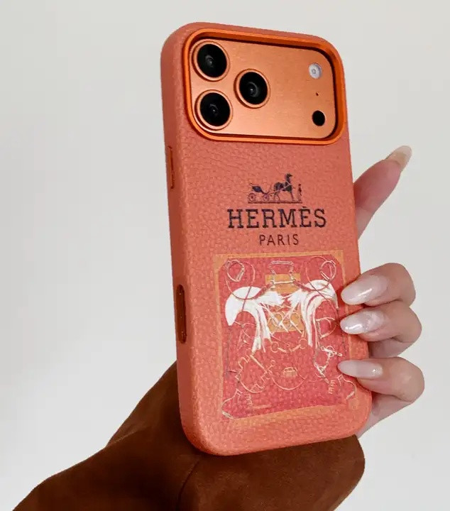 エルメス iPhone ケース ライチテクスチャ レザー 馬柄 可愛い 背面