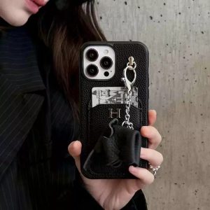 エルメス iPhone ケース ライチテクスチャ レザー 馬柄 可愛い 背面