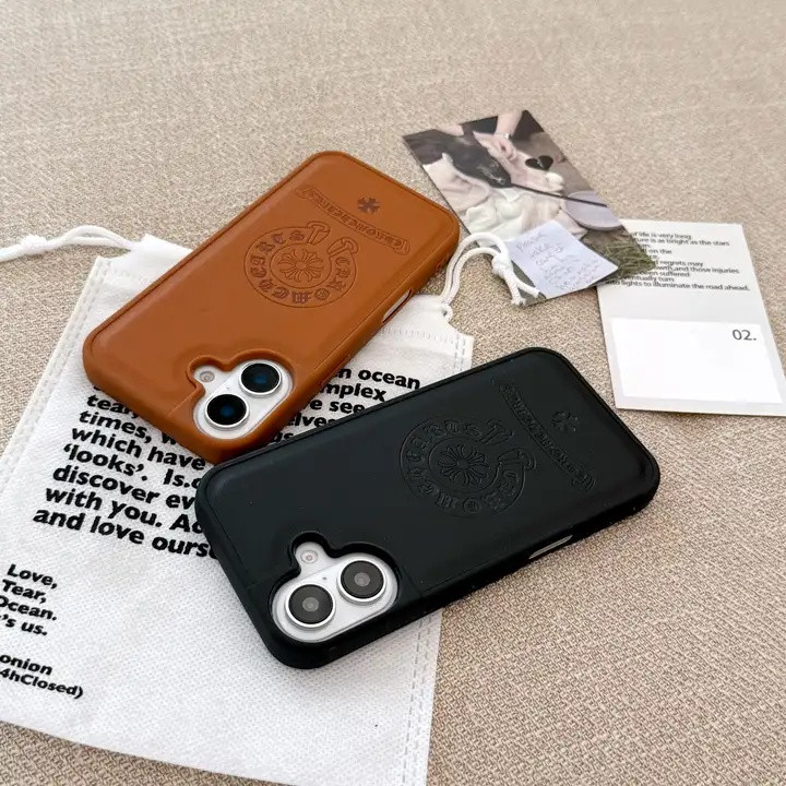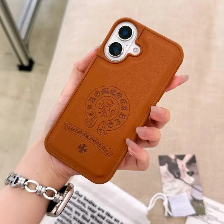 クロムハーツ iPhone ケース レザー調 型押しロゴ おしゃれ 耐衝撃 レンズ保護 MagSafe対応