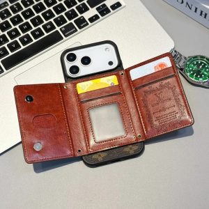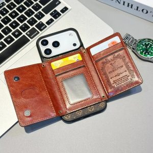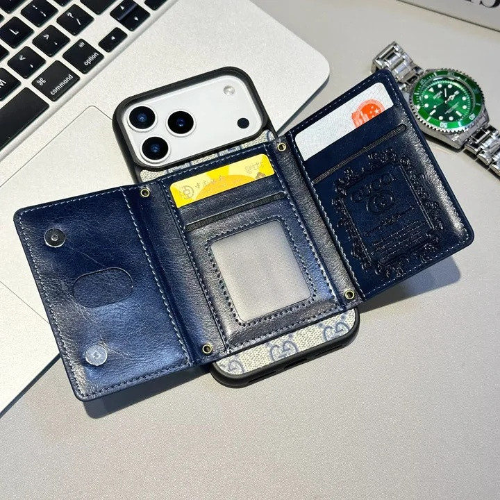 グッチ iPhone ケース レザー 二つ折り財布型 カード収納 多機能個