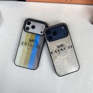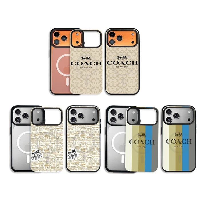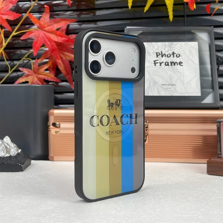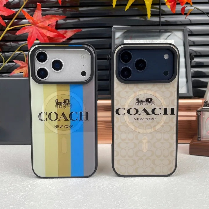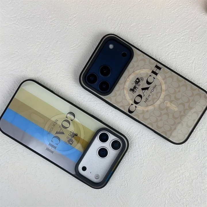 コーチ iPhone ケース 分体式 MagSafe対応 背面ガラス 馬車プリント ワイヤレス充電