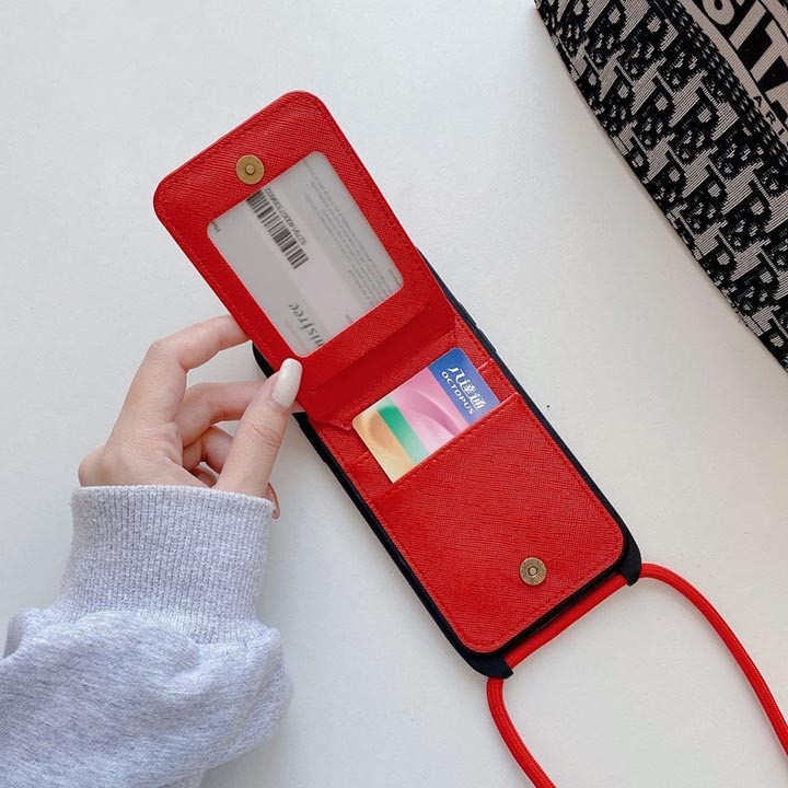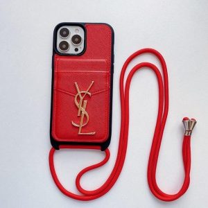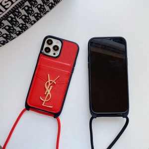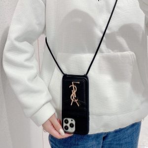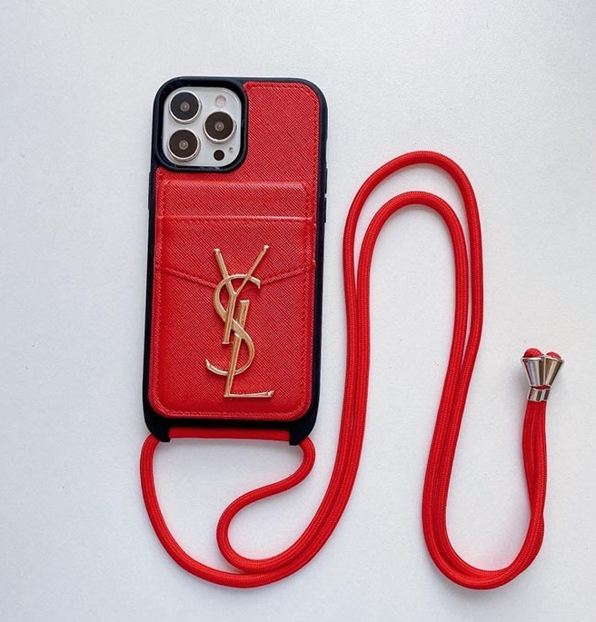 サンローラン iPhone ケース レザー カード入れ付き 背面ショルダー 斜め掛けスタイル