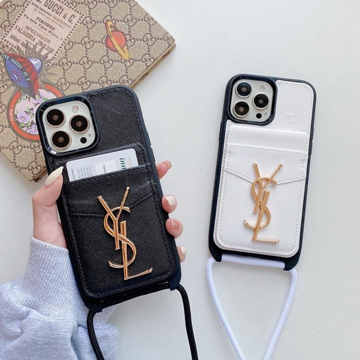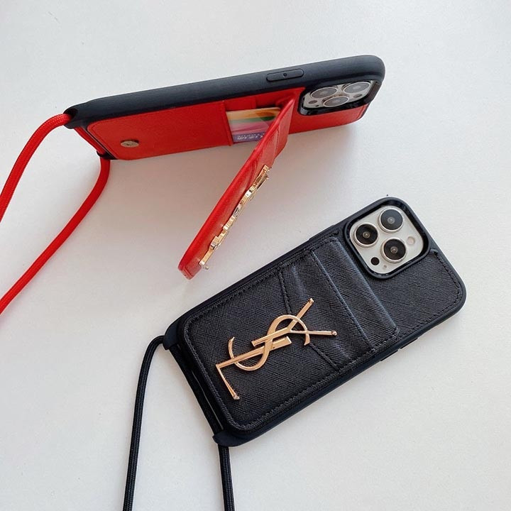 サンローラン iPhone ケース レザー カード入れ付き 背面ショルダー 斜め掛けスタイル個