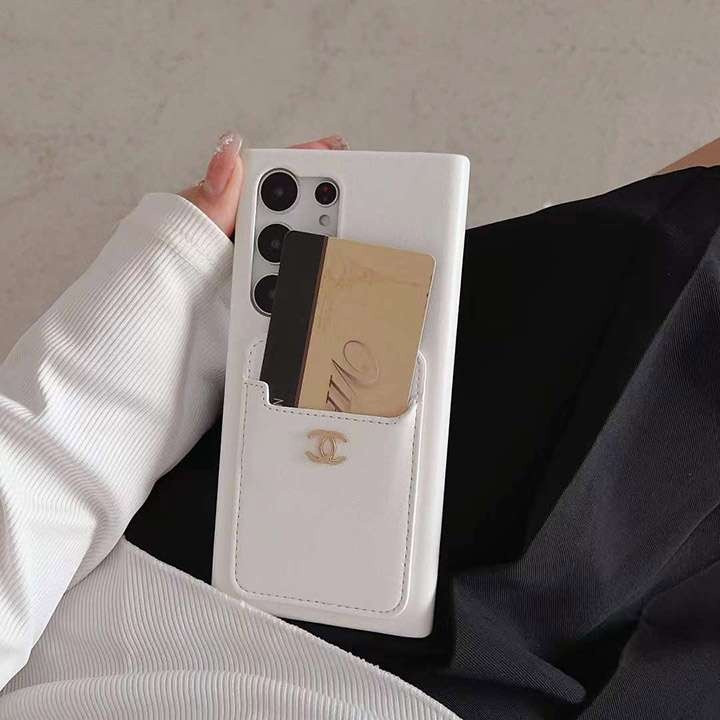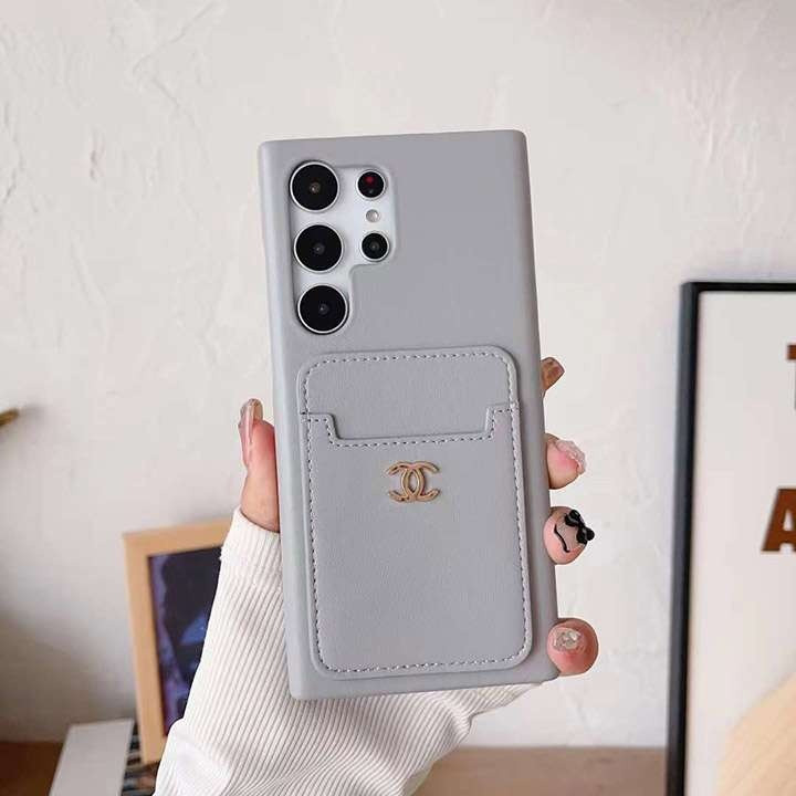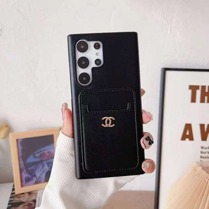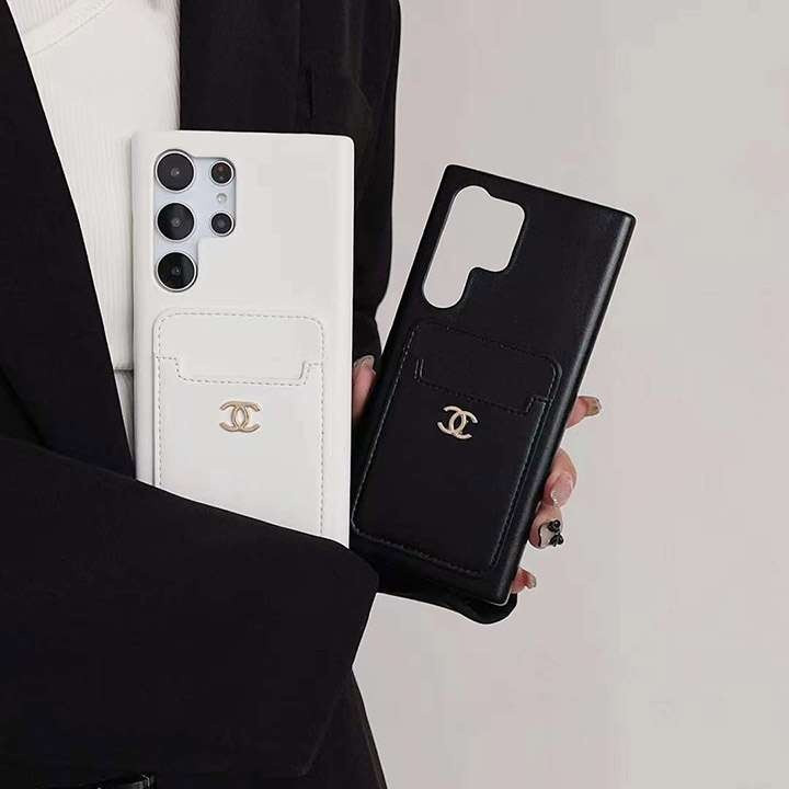 シャネル Galaxy ケース 高級レザー カード入れ メタルロゴ 耐衝撃 背面収納