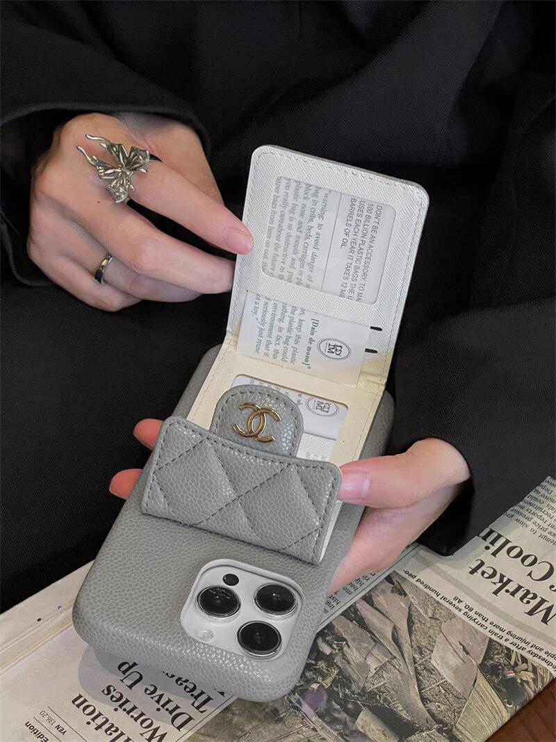 シャネル iPhone ケース カード収納 ミラー ショルダー 人気個