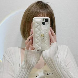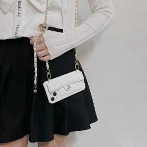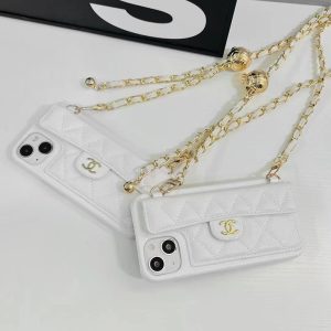 シャネル iPhone ケース スマホショルダー キャビアレザー ホワイト 背面カード収納 おしゃれ MagSafe対応