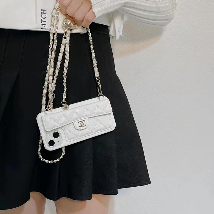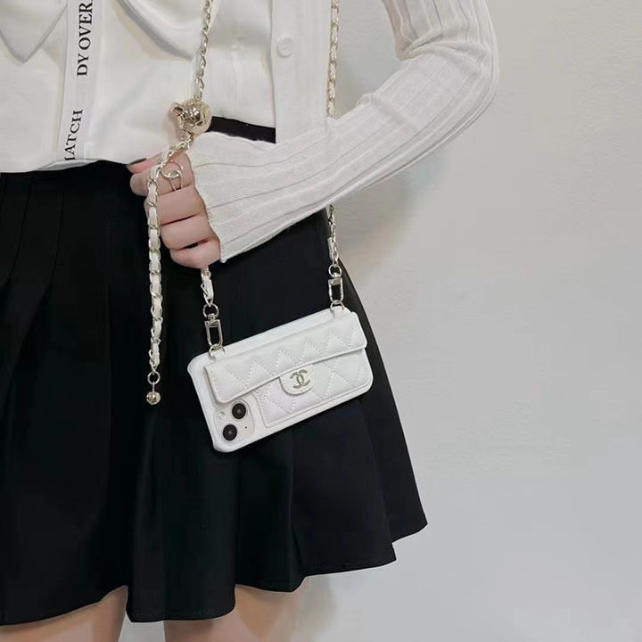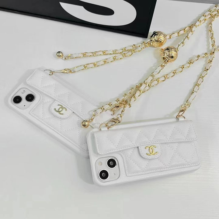 シャネル iPhone ケース スマホショルダー キャビアレザー ホワイト 背面カード収納 おしゃれ MagSafe対応個