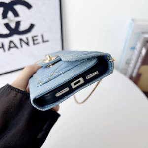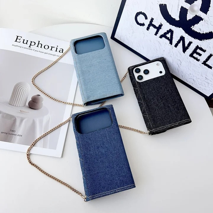 シャネル iPhone ケース 手帳型 デニム柄 ショルダー チェーン付き ミニバッグ 女性向け