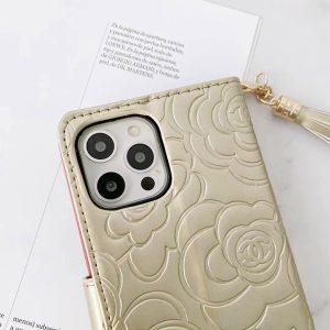 シャネル iPhone ケース 手帳型 上品 レザー カメリア花柄 カード入れ スタンド機能
