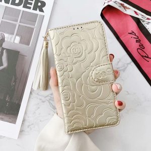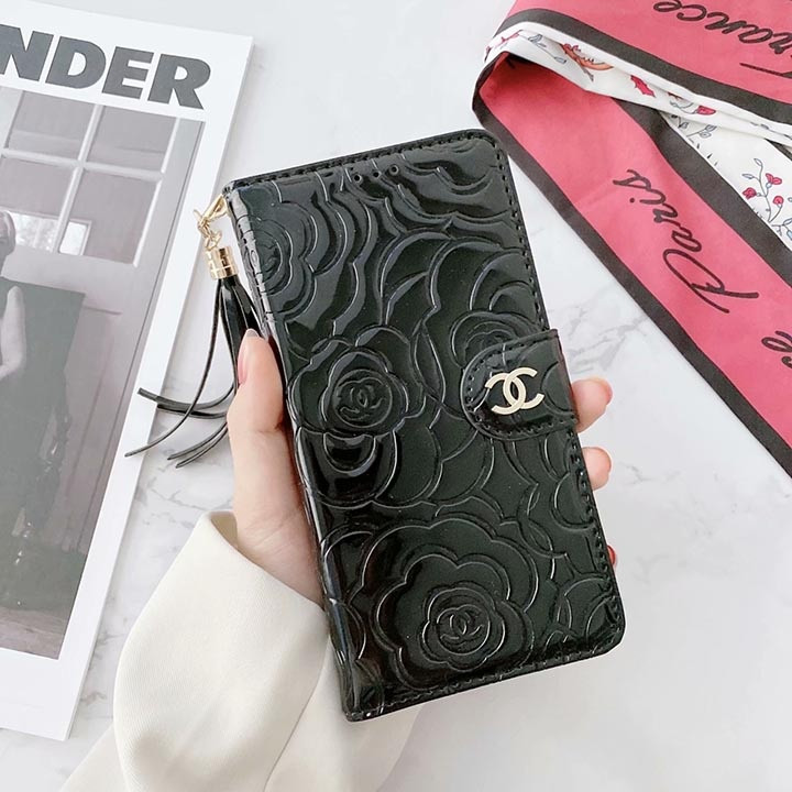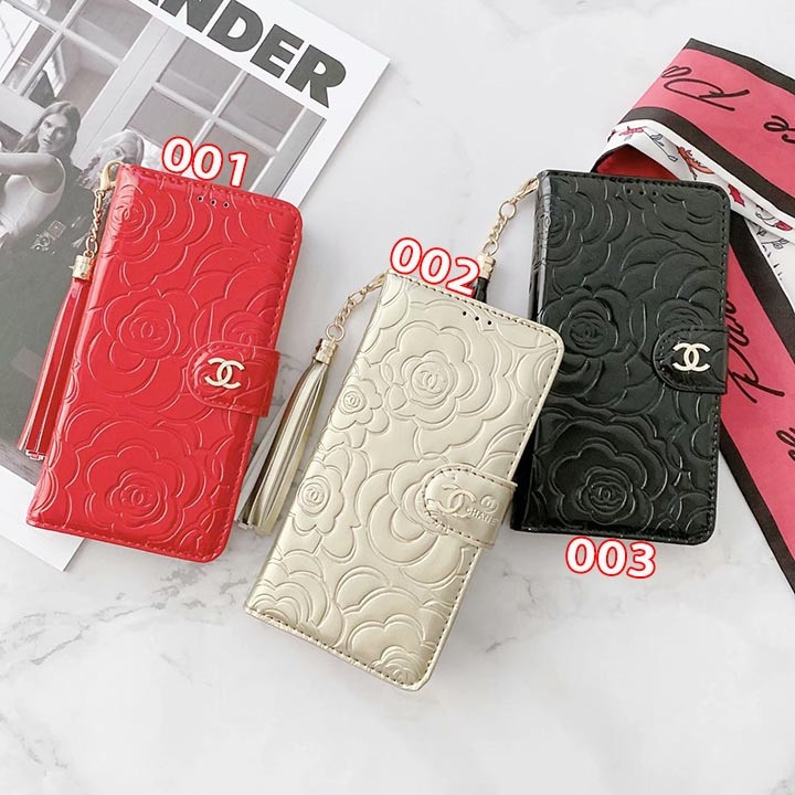 シャネル iPhone ケース 手帳型 革製 型押し カメリア カード収納 マグネット内蔵 スタンド機能
