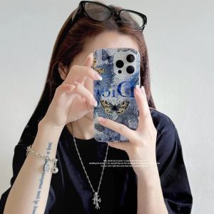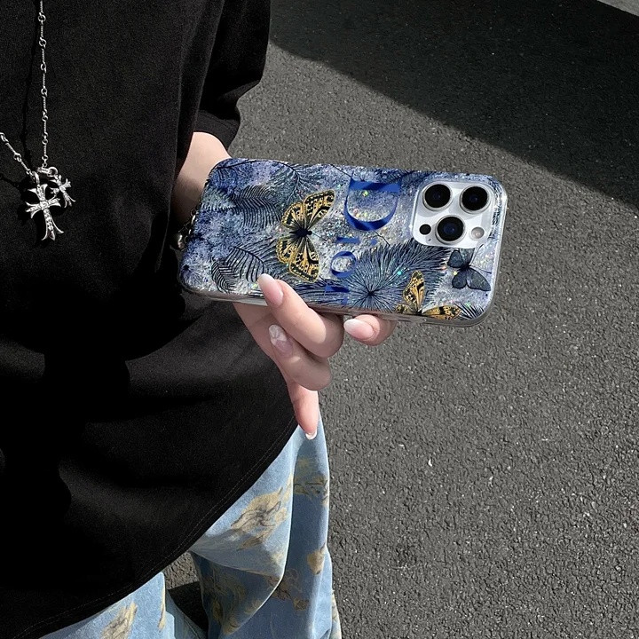 ディオール iPhone ケース グリッター 花と蝶デザイン 可愛い おしゃれ