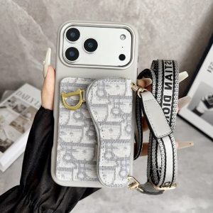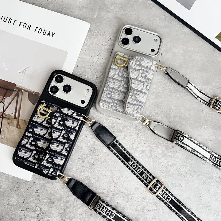 ディオール iPhone ケース サドル オブリーク ジャカード Dロゴ ストラップ付き MagSafe対応
