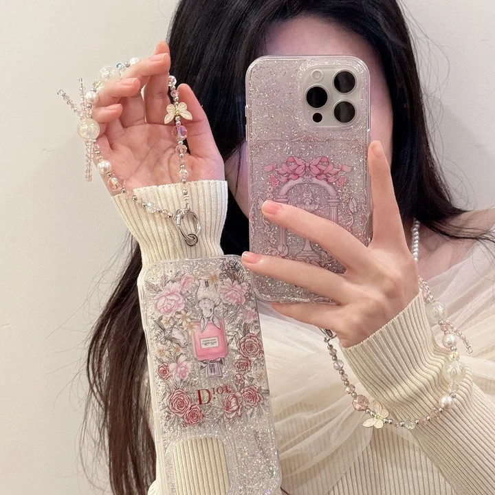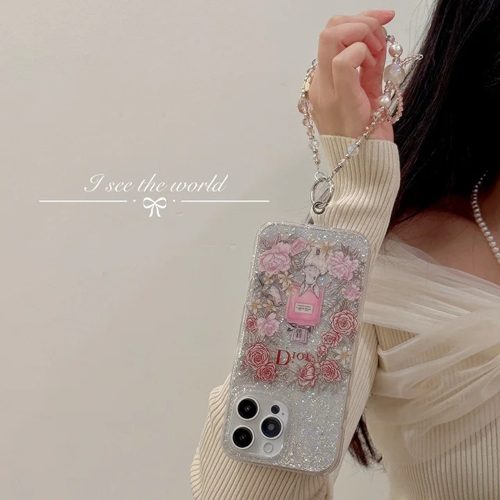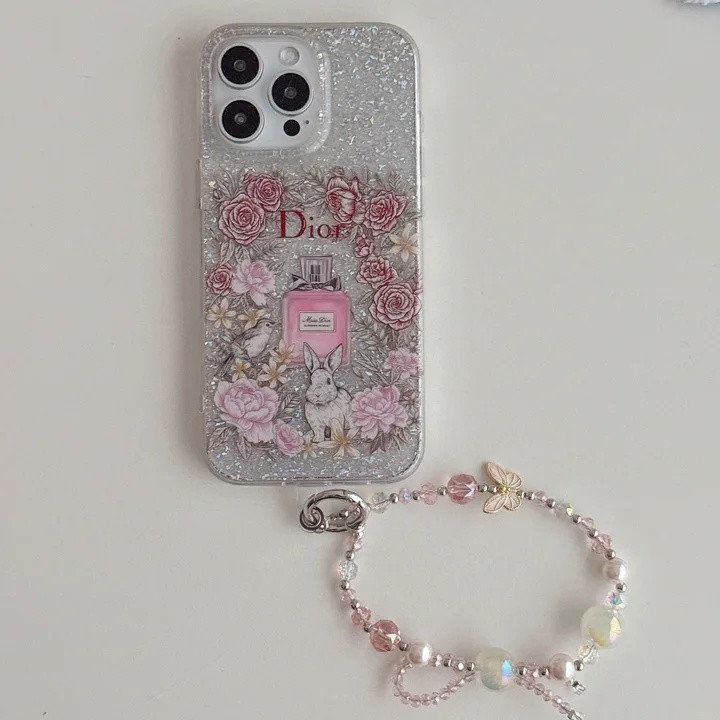 ディオール iPhone ケース 香水瓶デザイン きらきら 銀箔 ストラップ付き