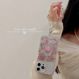 ディオール iPhone ケース 香水瓶デザイン きらきら 銀箔 ストラップ付き