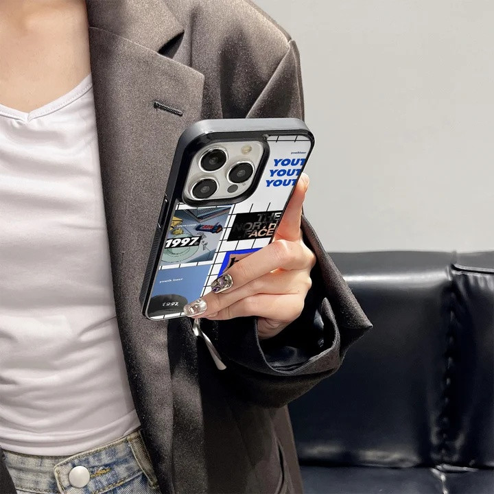 ノースフェイス iPhone ケース ミラー付き 鏡面加工 耐衝撃 レンズ保護 滑り止め アウトドア