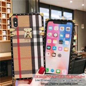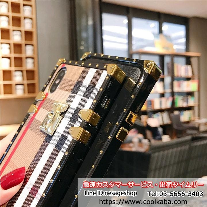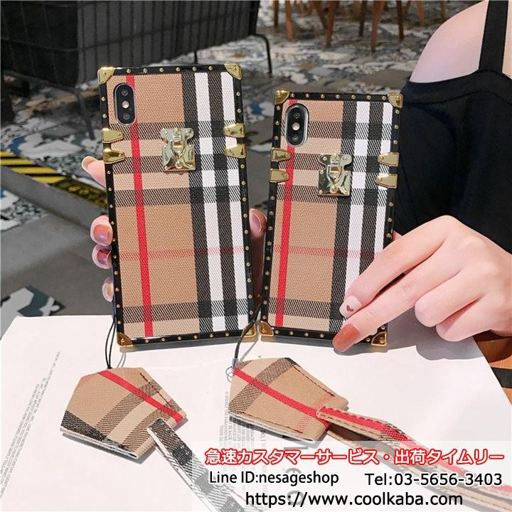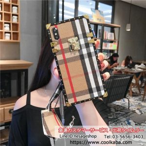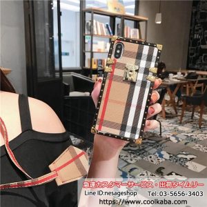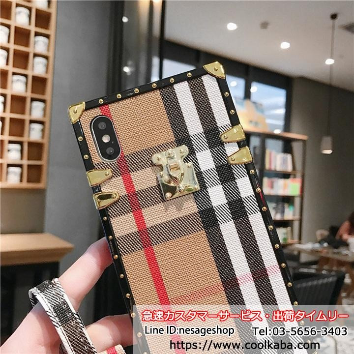 バーバリー iPhone ケース チェック柄 トランク型 TPUバンパー 落下防止 ストラップ付き個