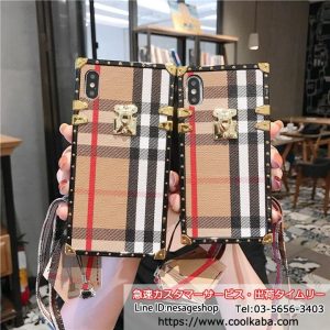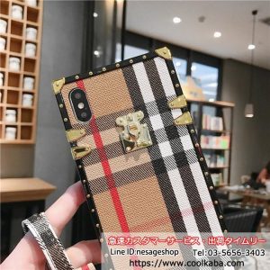 バーバリー iPhone ケース チェック柄 トランク型 TPUバンパー 落下防止 ストラップ付き