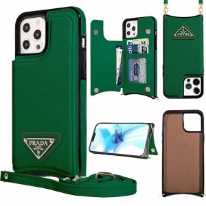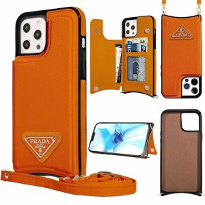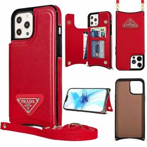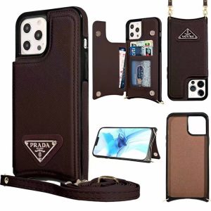プラダ iPhone ケース サフィアーノレザー ショルダーストラップ 財布型 カード収納 スタンド機能個