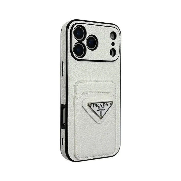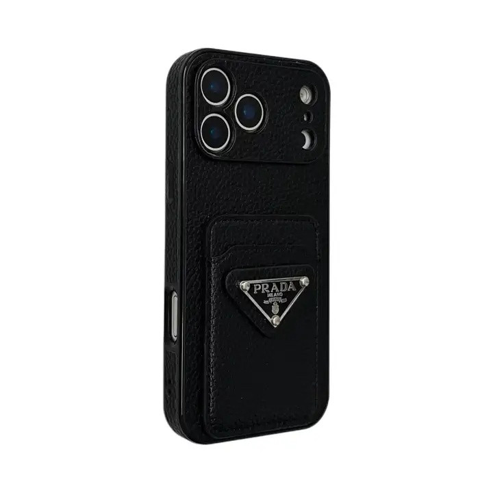 プラダ iPhone ケース レザー 背面収納 三角プレートロゴ カード収納 MagSafe対応