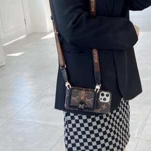 ルイヴィトン iPhone ケース ショルダーストラップ付き モノグラム カード入れ 落下防止