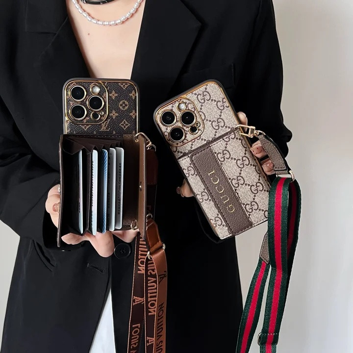 ルイヴィトン iPhone ケース ショルダー 横型 アコーディオン カード収納 小銭入れ メッキ加工