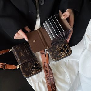 ルイヴィトン iPhone ケース ショルダー 横型 アコーディオン カード収納 小銭入れ メッキ加工