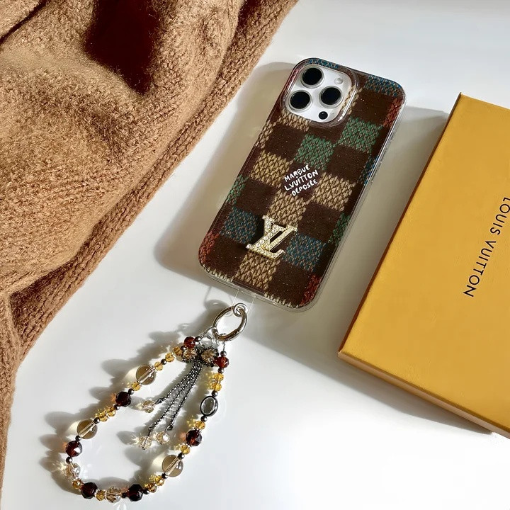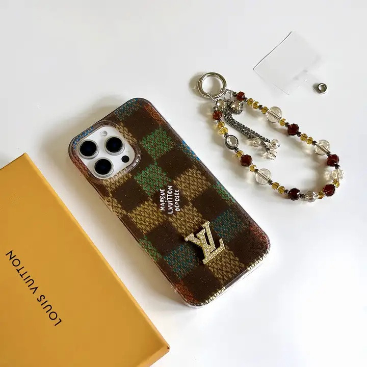 ルイヴィトン iPhone ケース ダミエチェック柄 グリッターデザイン ストラップ付き おしゃれ個