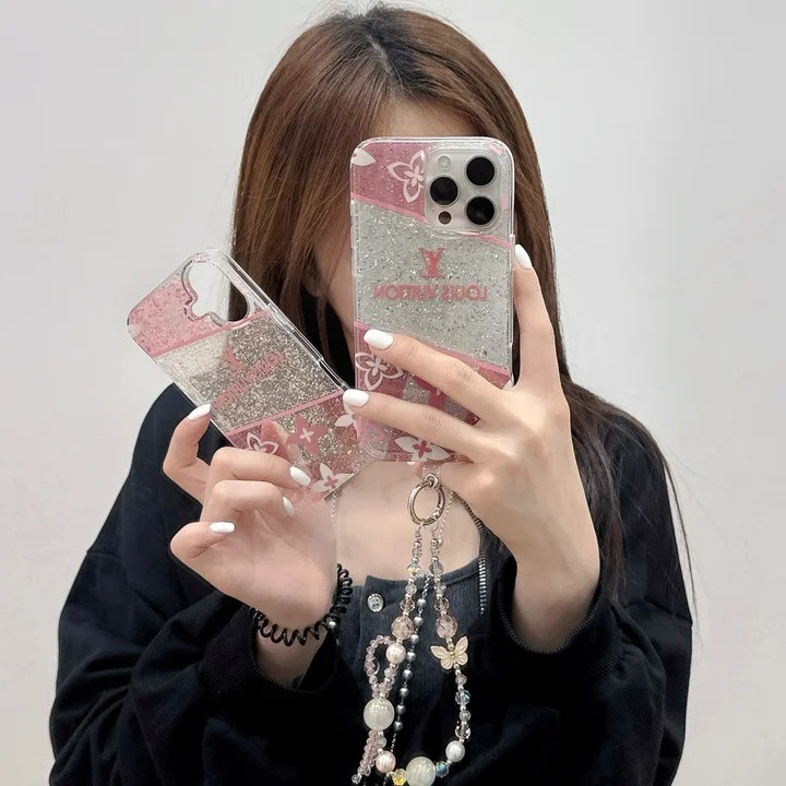 ルイ?ヴィトン iPhone ケース ピンク チェック柄 グリッター キラキラ ストラップ付き個