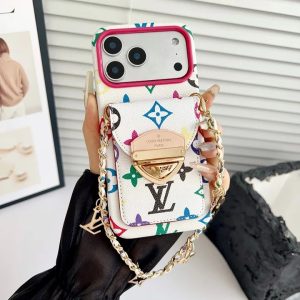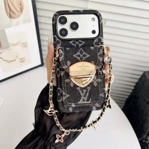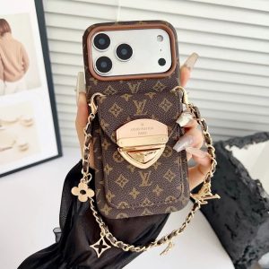 ルイヴィトン iPhone ケース モノグラム デザイン カード収納 ショートチェーン付き 落下防止個