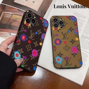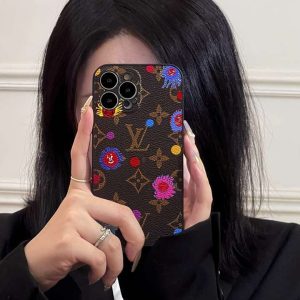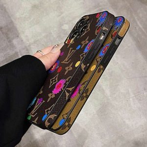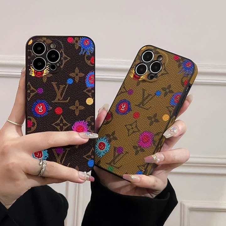 ルイヴィトン iPhone ケース モノグラム レザー 落書き かわいい 一体型カメラレンズ保護