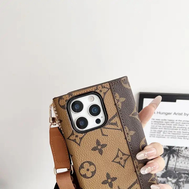 ルイヴィトン iPhone ケース 手帳型 ストラップ付き モノグラムレザー 財布機能 MagSafe対応個
