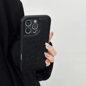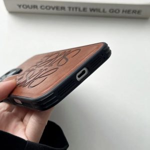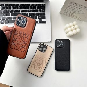ロエベ iPhone ケース レザー 型押し アナグラム 耐衝撃 一体型 レンズ保護 おしゃれ